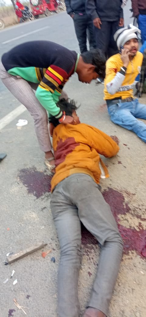 मुरादपुर और छत्तीपुर के बीच सौखिया मोड़ के पर बाइक सवार डल्लफ से जोरदार टक्टर