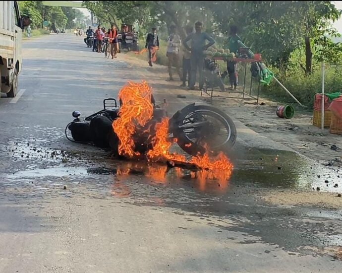 अवैध तरीके से दबंगई कर रास्ते में हो रहा निर्माण कार्य